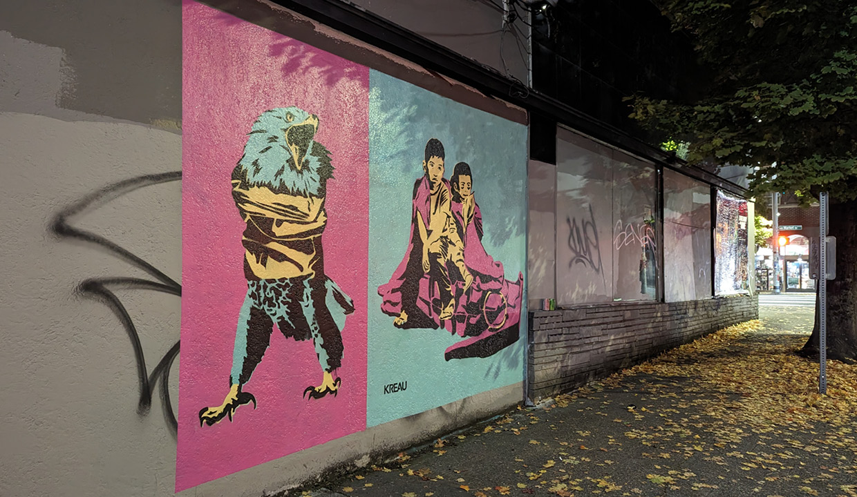 In the Ballard neighborhood of Seattle, WA. This stencil mural is in response to the ongoing conflict in Gaza.