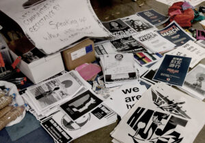 I hand sprayed over 100 copies of the design on newsprint for wheat-pasting around town and donated the posters to local grassroots movements that were organizing local artists for non-violent protests, including the J19 Guerrilla Art School with Cascadia Now, Left Bank Books, and few independent folks. I also created about two gallons of wheat paste for the other artists.